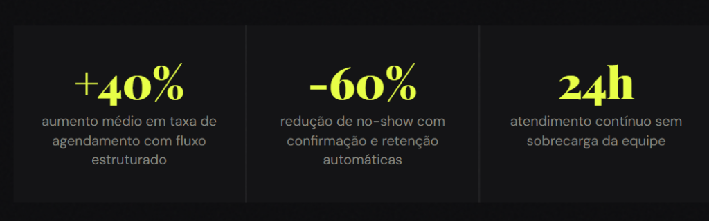 +40% → aumento médio em taxa de agendamento com fluxo estruturado